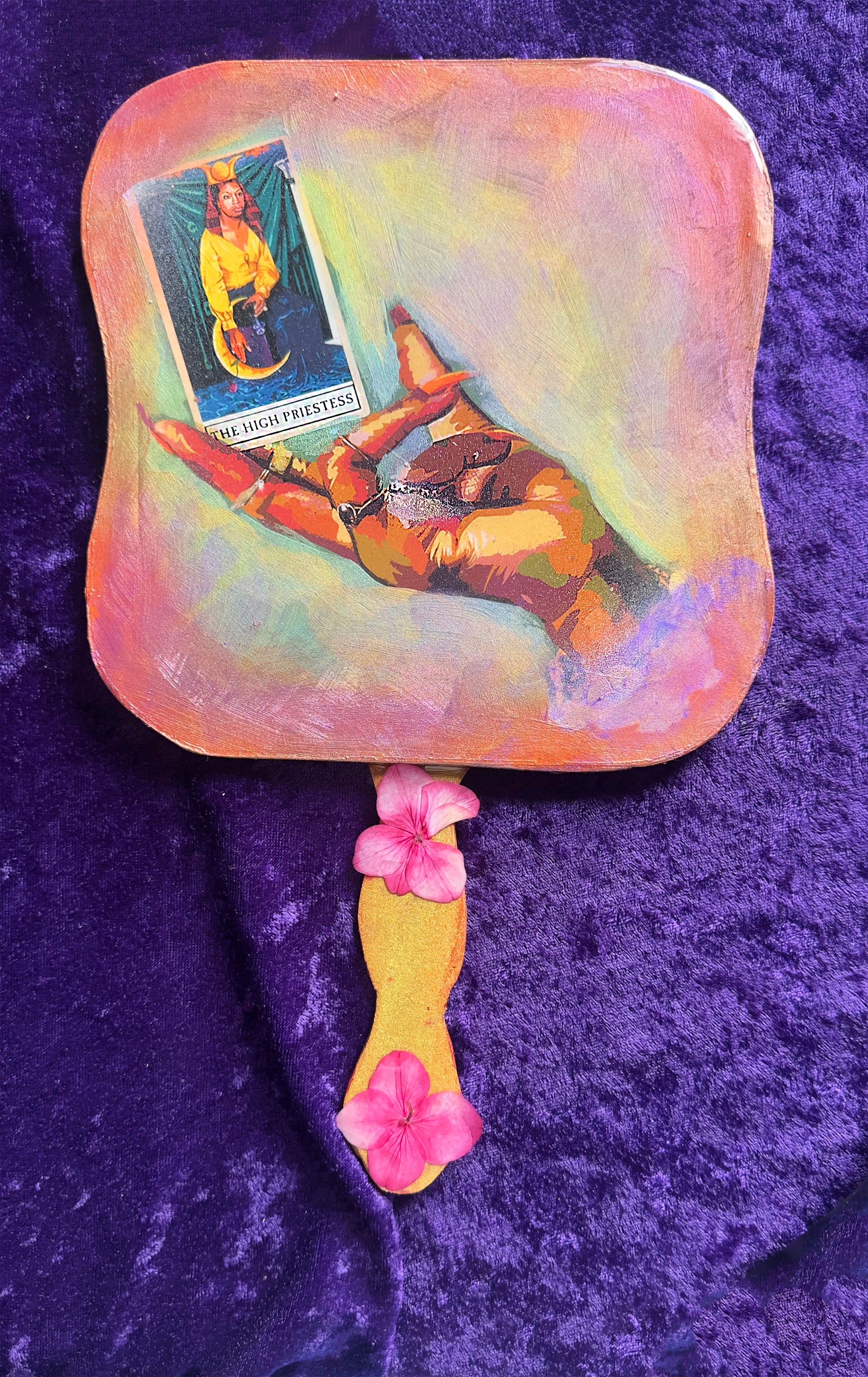 One of kind heirloom relic layered with mixed media on wood with hand poured epoxy resin and added flowers.